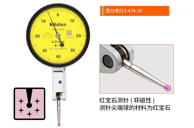 日本mitutoyo三豐杠桿百分表513-474-10E采用非分離結構實現測量方向自動返轉。由于表盤與帶有O型圈的鏡片一體式設計,指示表具有防水防塵性能......